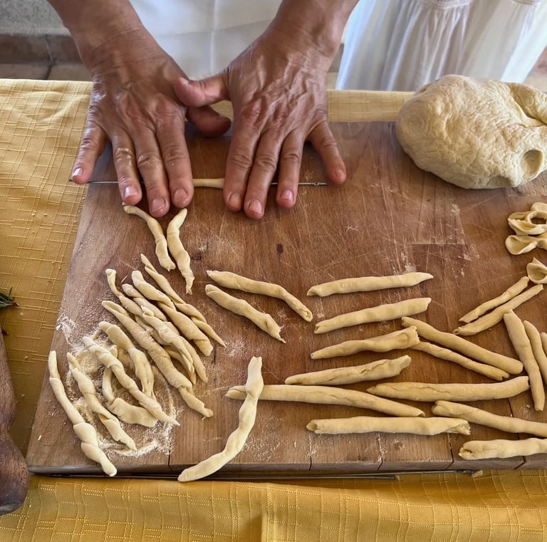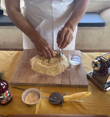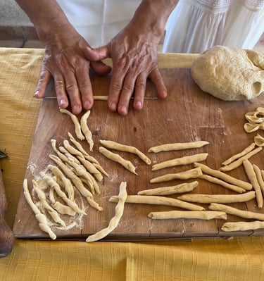 Dopo aver ottenuto l'impasto e lasciato riposare, sarà pronto per essere modellato e trasformato nella nostra autentica pasta siciliana. Prepareremo insieme la pasta nelle varie forme tradizionali siciliane, proprio come mi ha insegnato mia nonna.