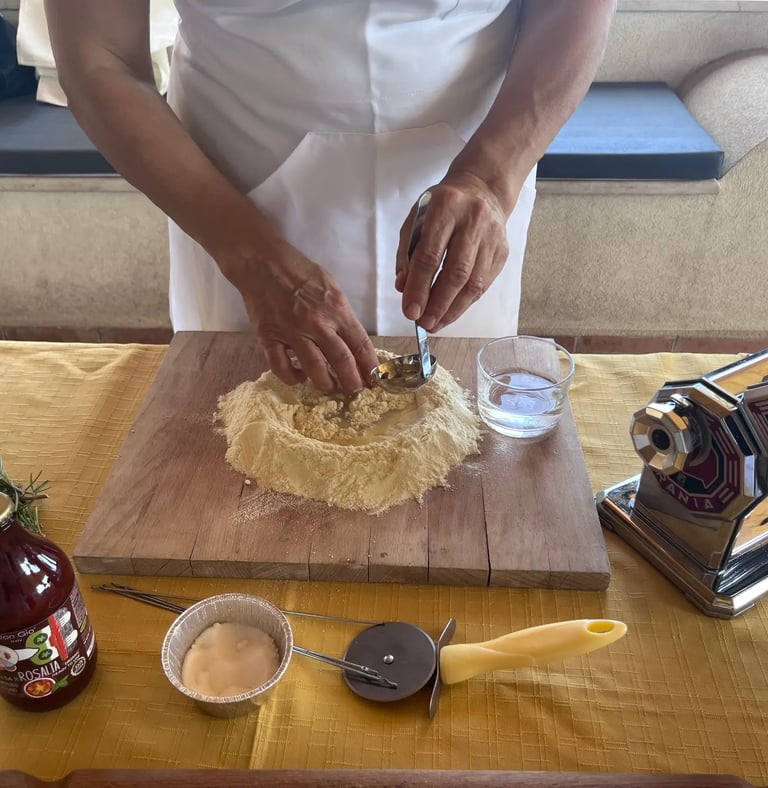 È il momento di mettere le mani in pasta! Vi mostreremo come preparare l'impasto, dosando gli ingredienti e lavorandolo per ottenere una consistenza perfetta, base fondamentale per la nostra pasta siciliana. Una volta pronto, lo lasceremo riposare per circa 30 minuti e, nel frattempo, passeremo alla preparazione del sugo.